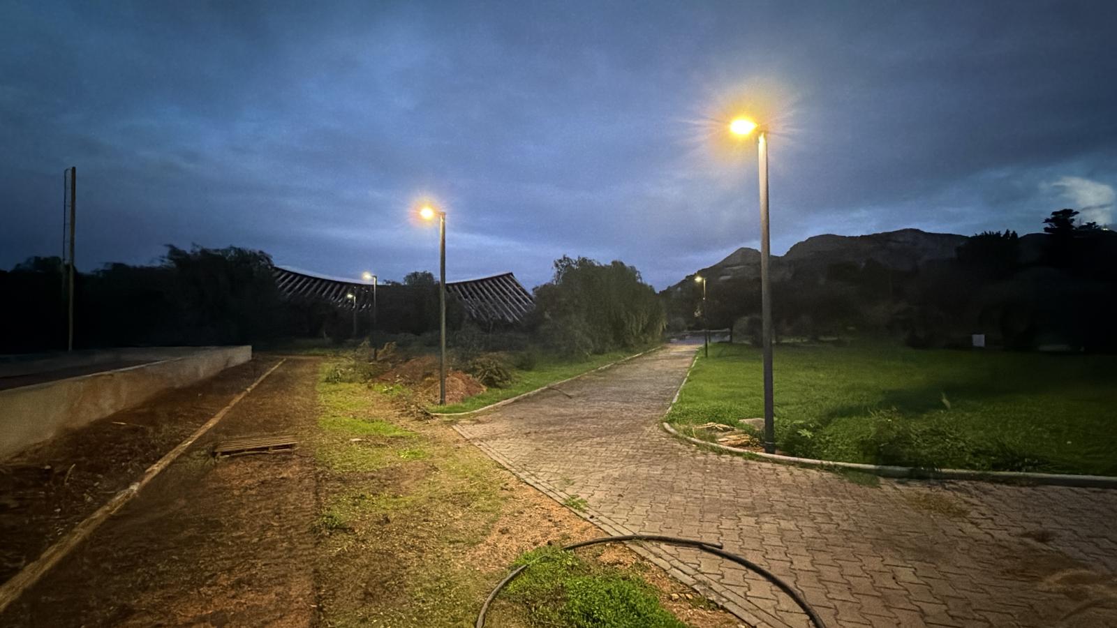 La rialimentazione della cabina principale ha consentito l’attivazione di buona parte dei punti luce presenti all’interno dei viali della cittadella su cui sta proseguendo l’attività di AMG Energia. Si stanno riutilizzando alcuni dei pali da 7 metri esistenti e sono stati acquistati nuovi pali da 4 metri; per i due parcheggi sono stati acquistati, inoltre, 50 nuovi pali da 7 metri. I vecchi apparecchi a vapori di sodio da 250 watt verranno dismessi e saranno sostituiti da nuovi apparecchi dello stesso modello, aggiornati a led così da mantenere il contesto estetico approvato dalla sovrintendenza nel vecchio impianto del 2000. Non saranno ricostituiti, invece, i vecchi apparecchi da un metro con funzione estetica e quelli “a pavimento” nelle aiuole. Nei viali e nelle aree di utilizzo quotidiano verranno installati nuovi apparecchi a led, da 45 a 60 watt nei pali da 7 metri e da 13 a 35 watt nei pali da 4 metri che si trovano prevalentemente attorno al campo di baseball, in modo da minimizzare i consumi energetici.