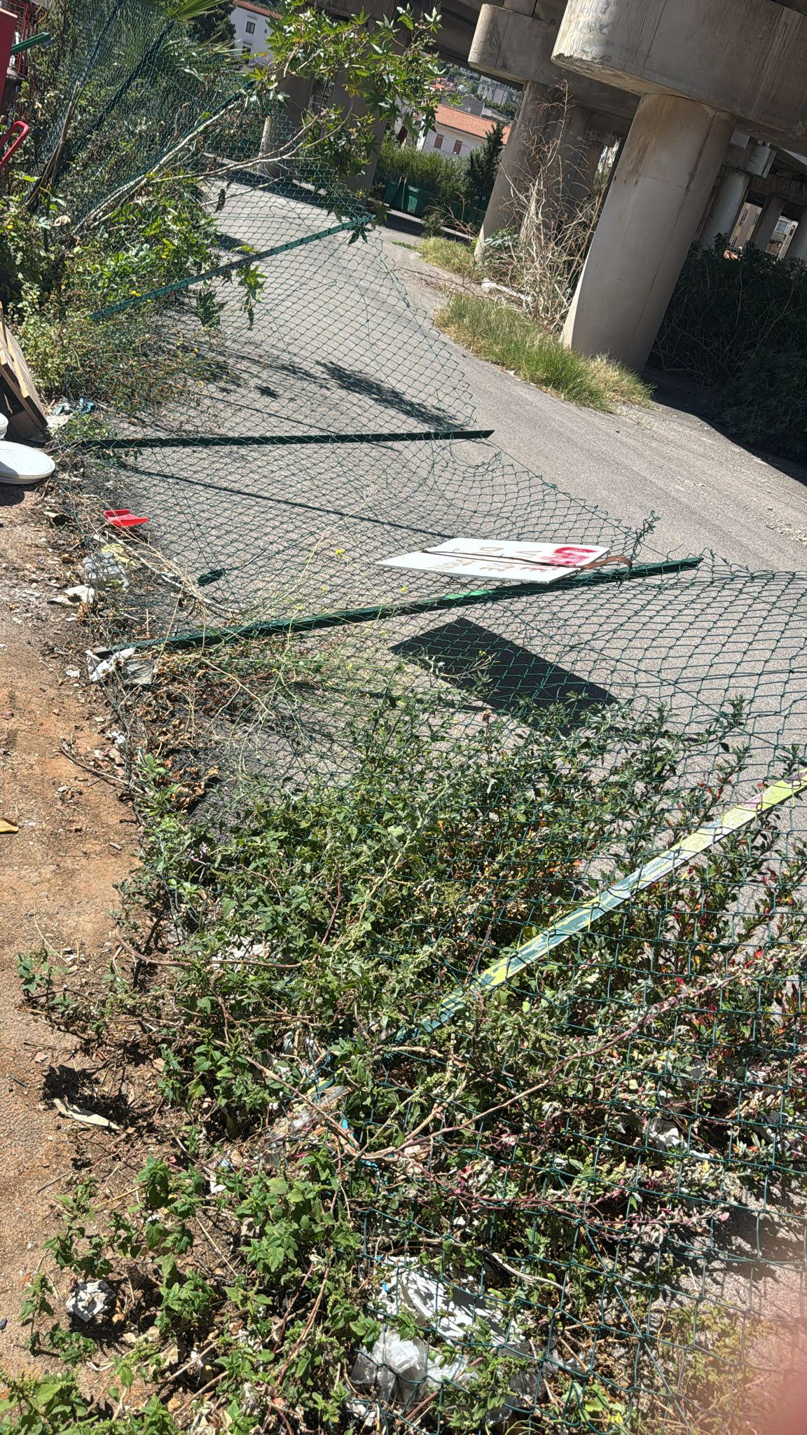 In foto: rete divelta, compattanti vandalizzati e il CCR Nicoletti