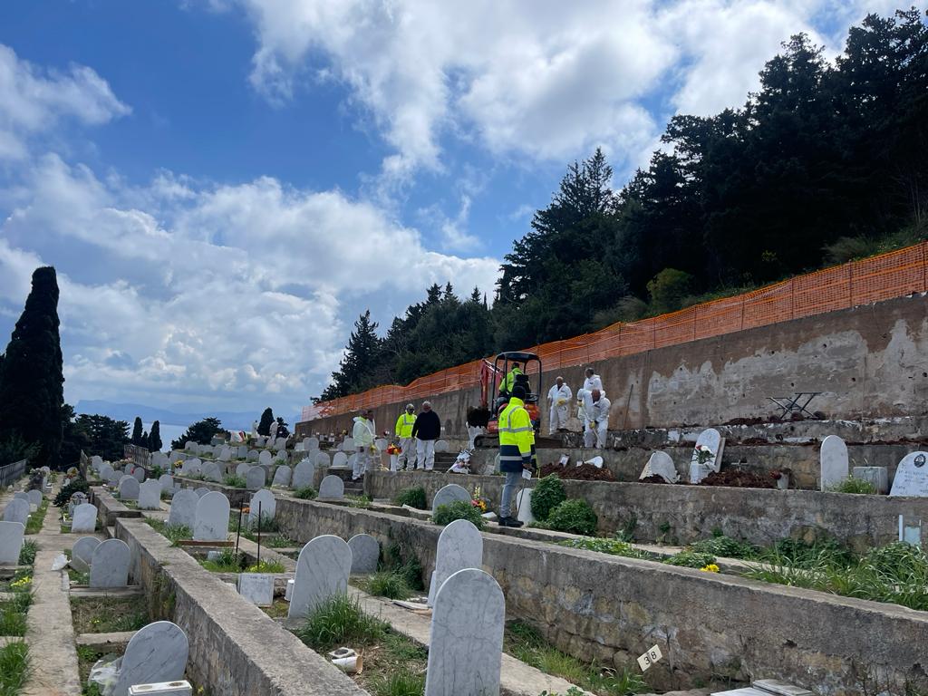 Con le 28 sepolture eseguite nel corso della giornata di oggi, il numero delle bare rimaste nei depositi al cimitero dei Rotoli è sceso a 990. A questo dato si arriva grazie alle tumulazioni all’interno dei primi lotti dei loculi fuori terra e alle inumazioni nella ex zona interdetta del camposanto, dove ogni giorno sono previste estumulazioni e nuove inumazioni. Queste operazioni stanno permettendo di procedere a una media di 20 sepolture al giorno.