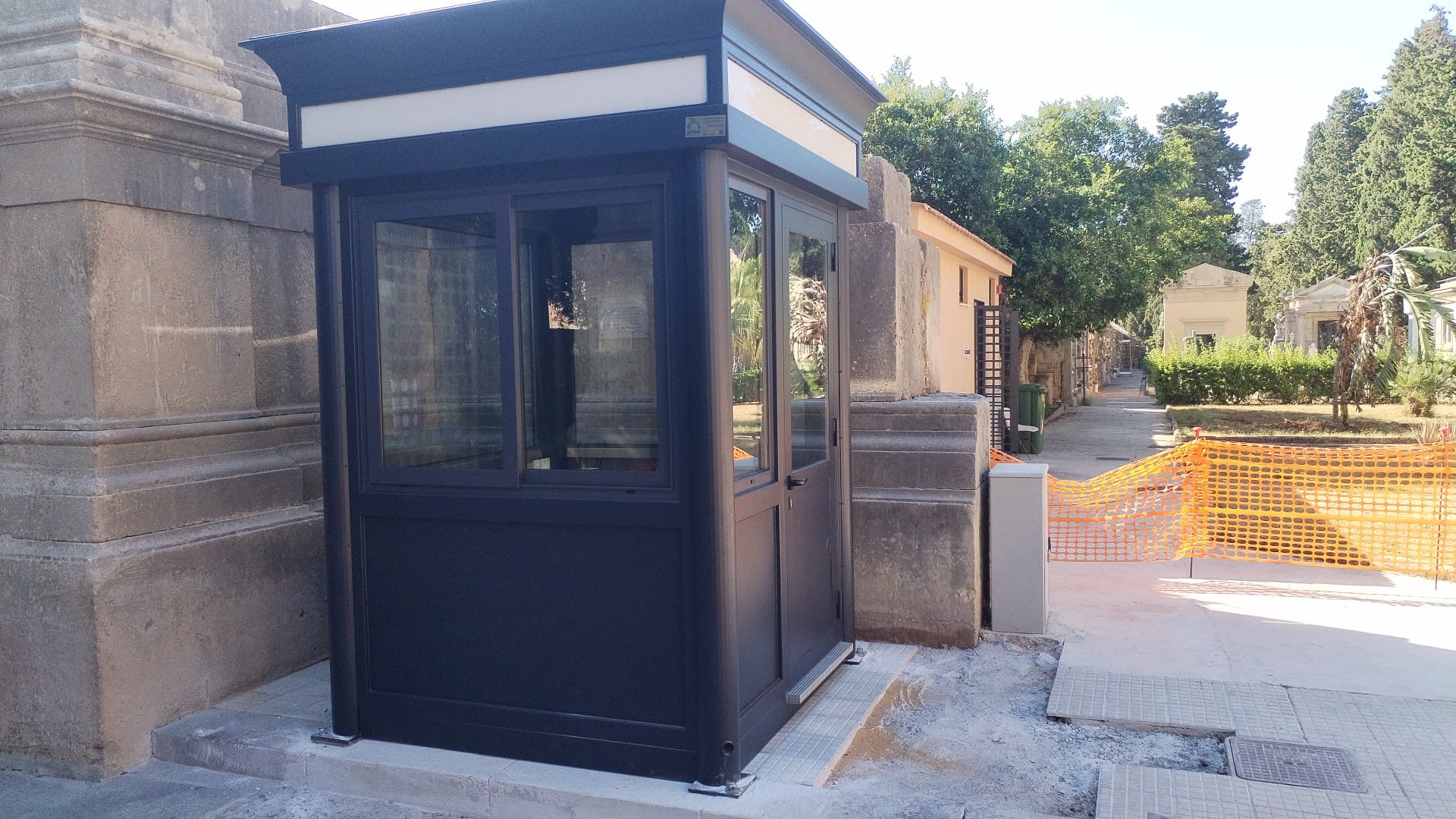 Oltre alla tettoia, è stato posizionato anche un nuovo chiosco-portineria, che andrà a sostituire l’attuale box ligneo ormai fatiscente. Entrambe le strutture – realizzate con materiali di alta qualità e resistenti agli agenti atmosferici – sono state progettate per essere perfettamente integrate con il contesto architettonico e paesaggistico tutelato, in conformità con le normative vigenti e con il nulla osta della Soprintendenza BB.CC.AA.