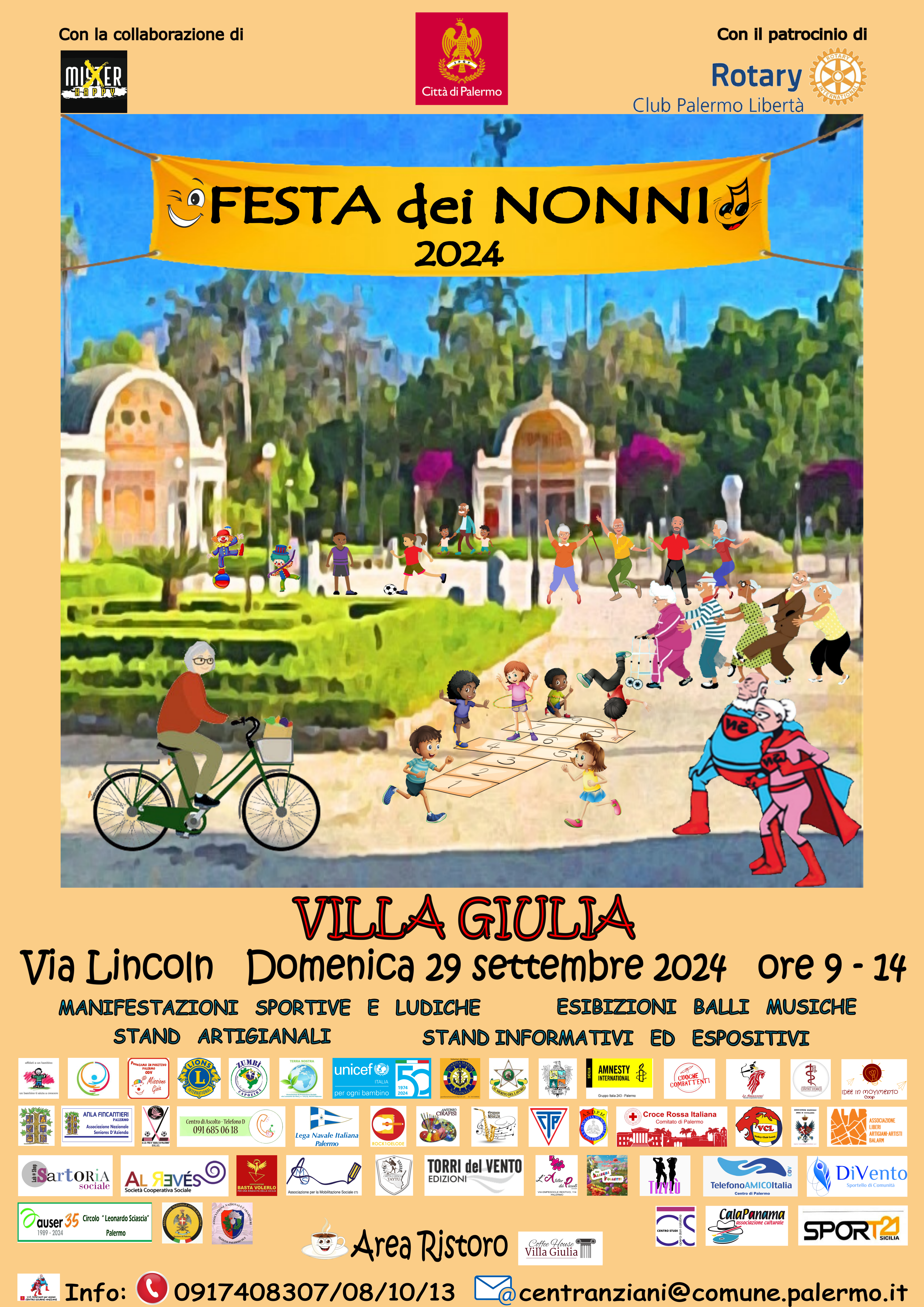 Il Centro Diurno Anziani del Comune di Palermo rende noto che, anche quest’anno, avrò luogo la Festa dei Nonni, con manifestazioni sportive e ludiche, esibizioni, balli, musica e la presenza di stand artigianali, informativi ed espositivi.