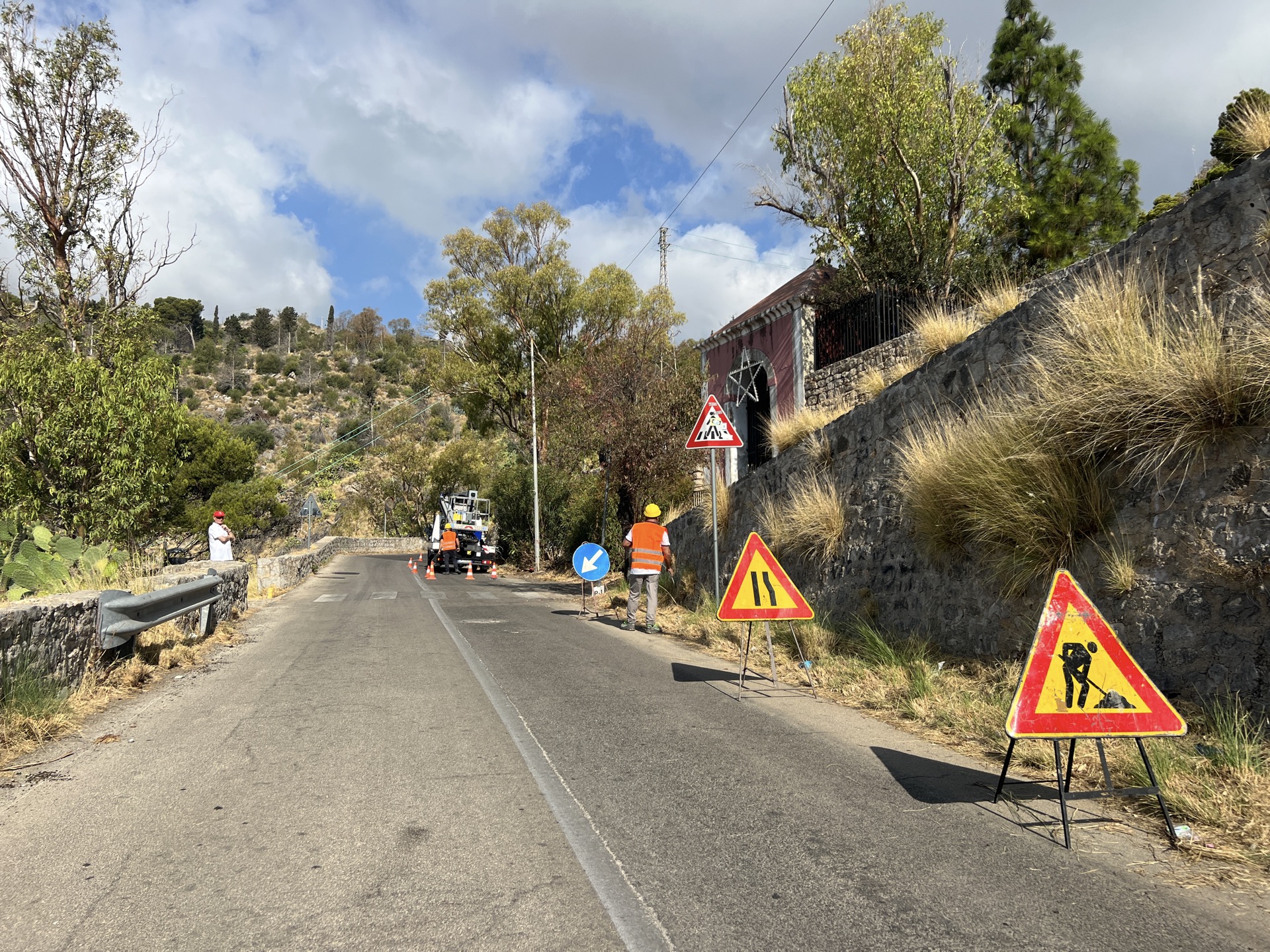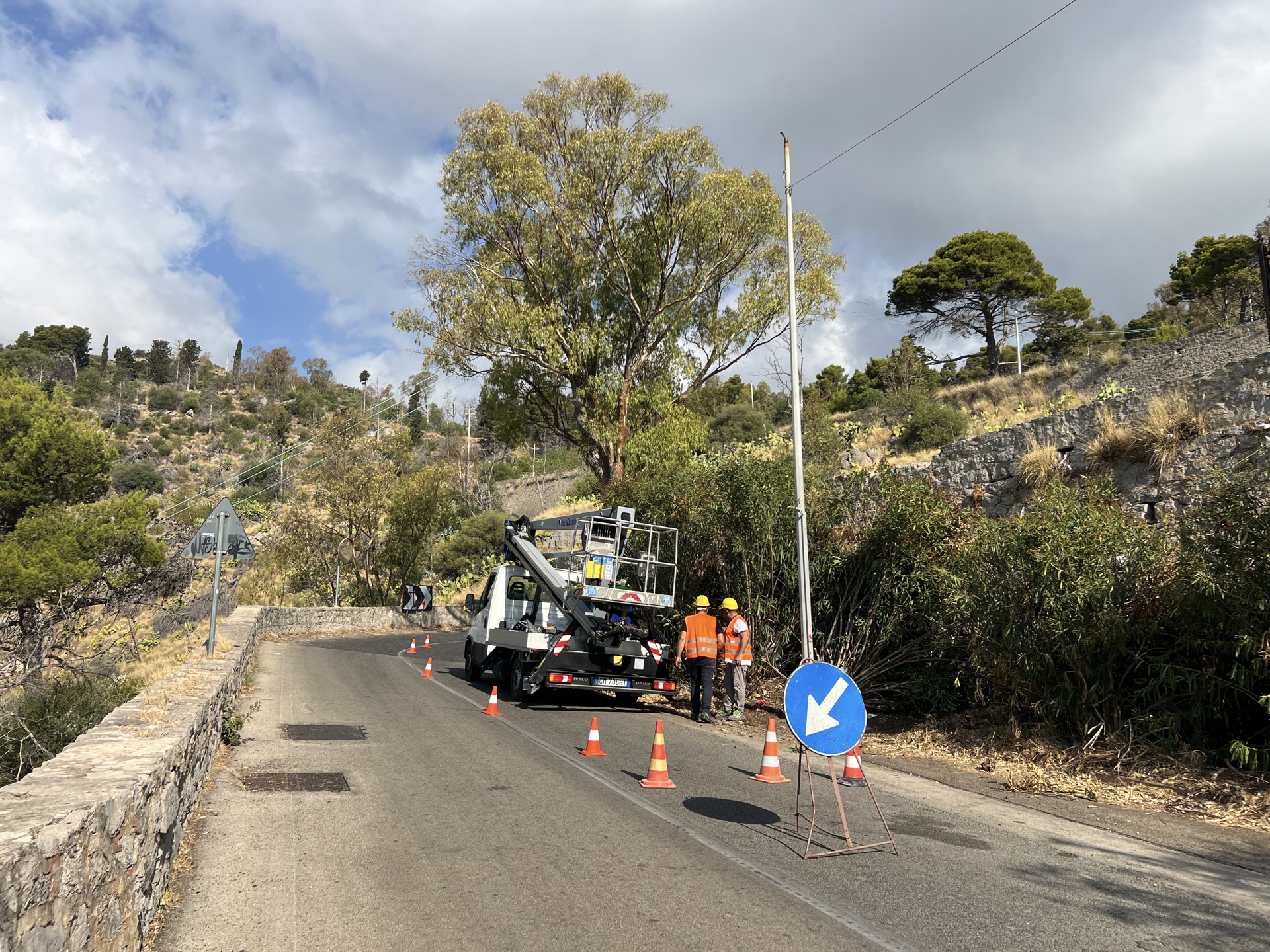 Una della attività più complesse dell’intervento - l’esecuzione di uno scavo con attraversamento stradale - è in programma per domani (6 agosto) e le operazioni dovrebbero concludersi nell’arco della mattinata; le altre opere che richiederanno l’apertura di trincee si svolgeranno a ridosso dei bordi della carreggiata in modo da ridurre l’impatto con i flussi veicolari verso il santuario di Santa Rosalia, molto intensi in questo periodo per il transito frequente di bus di linea e pullman turistici. I lavori vengono eseguiti nel pieno rispetto dell’ordinanza del presidente della Regione relativa “al rischio calore”.