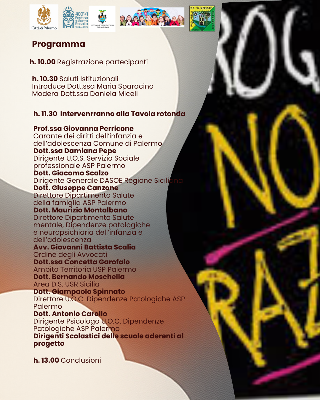 Con detto progetto, nato anche dalla spinta propulsiva della Consulta provinciale degli Studenti, l'Amministrazione comunale, per il tramite dell'Assessorato all’Istruzione e Formazione e dell’Ufficio del Garante dei diritti dell’infanzia e dell’adolescenza, in parteneriato con l'I.C.S. "G.Scelsa" con l'ASP di Palermo, con l'Ufficio Servizio Sociale per i Minorenni (USSM) del Ministero della Giustizia, nonché, insieme ad Enti del Terzo Settore e figure professionali esperte, si appresta ad avviare un percorso pilota, per l'intero territorio cittadino, di prevenzione delle dipendenze da sostanze negli adolescenti e preadolescenti.