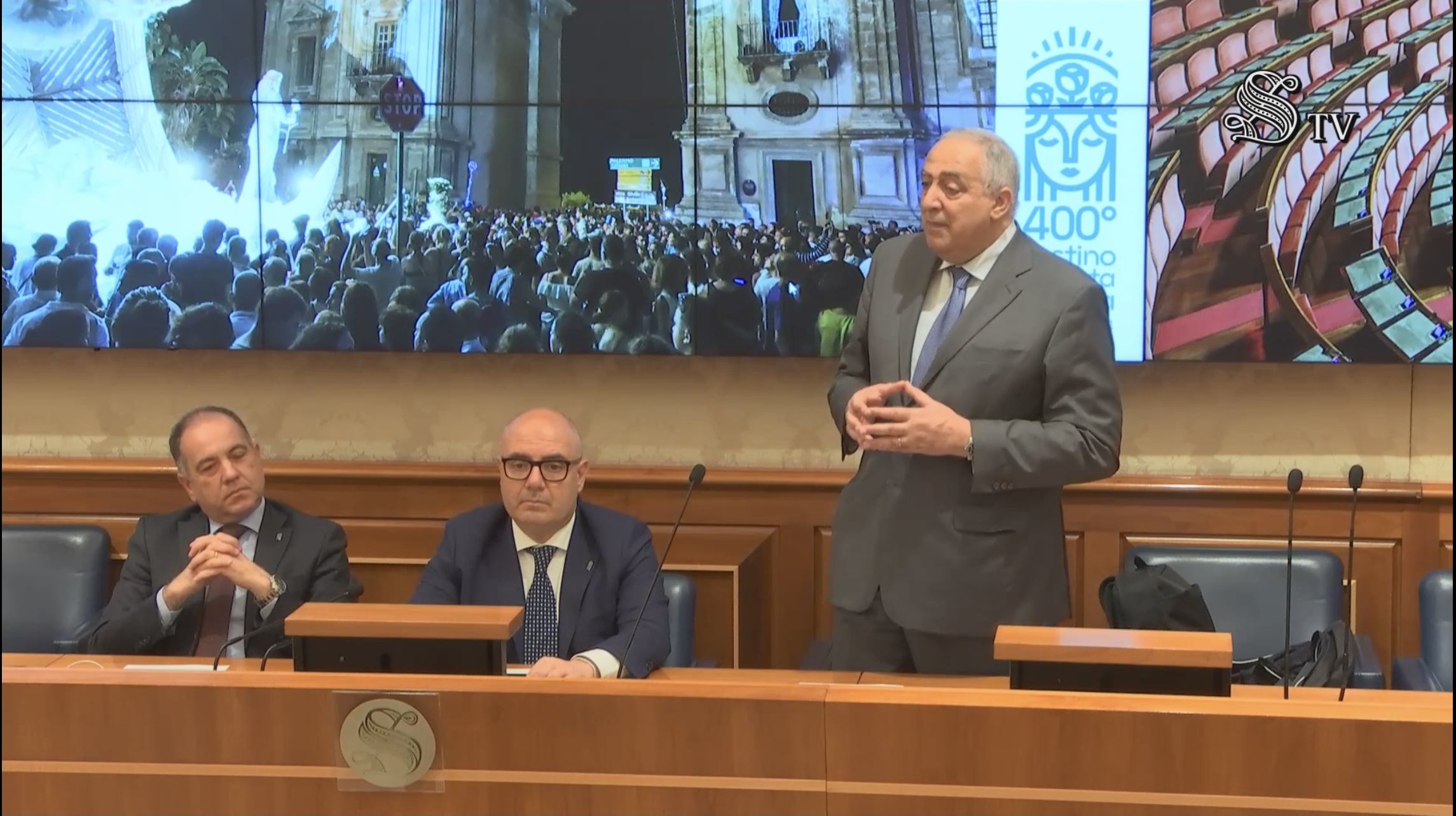 Su iniziativa del senatore Raoul Russo, la Sala “Caduti Nassirya” di Palazzo Madama, sede del Senato della Repubblica italiana, ospita la Presentazione del 400° anniversario del Festino di Santa Rosalia 1624-2024, alla presenza del sindaco del Comune di Palermo, Roberto Lagalla, dell’assessore alla Cultura, Giampiero Cannella. Quest’anno ricorre, infatti, il quattrocentesimo anniversario dal ritrovamento del corpo miracoloso di Santa Rosalia, patrona della città di Palermo. Simbolo di rinascita e di speranza, la Santuzza sarà celebrata con un ricco calendario di eventi e iniziative culturali che, a partire da maggio, andrà avanti sino ai primi mesi del 2025 coinvolgendo tutto il territorio metropolitano del capoluogo siciliano.