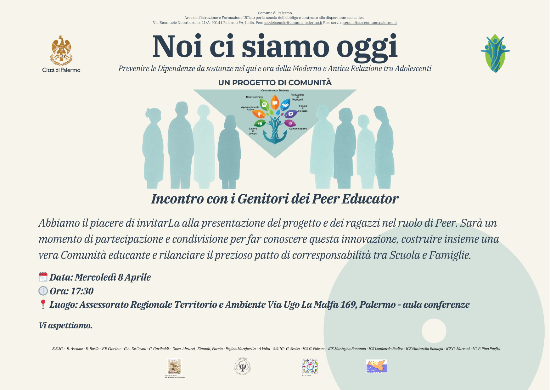Mercoledì 8 aprile “Noi ci siamo oggi – Incontro con i genitori dei Peer Educator”, evento di avvio e presentazione del progetto;