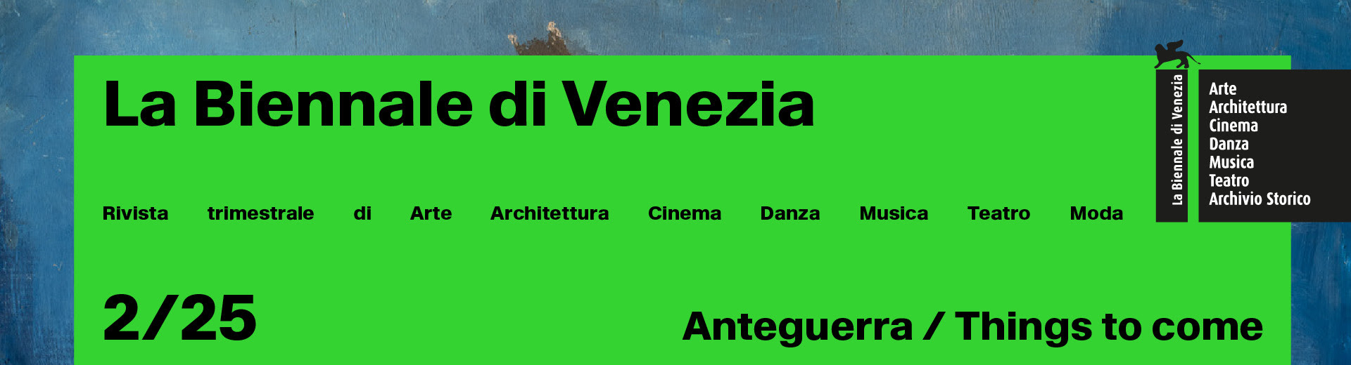 La rivista è in vendita nello store online della Biennale labiennale.org/it/acquista-online e nelle principali librerie. Info: pressoffice@labiennale.org ; Tel. +39 041 5218 849 Biennale di Venezia www.labiennale.org