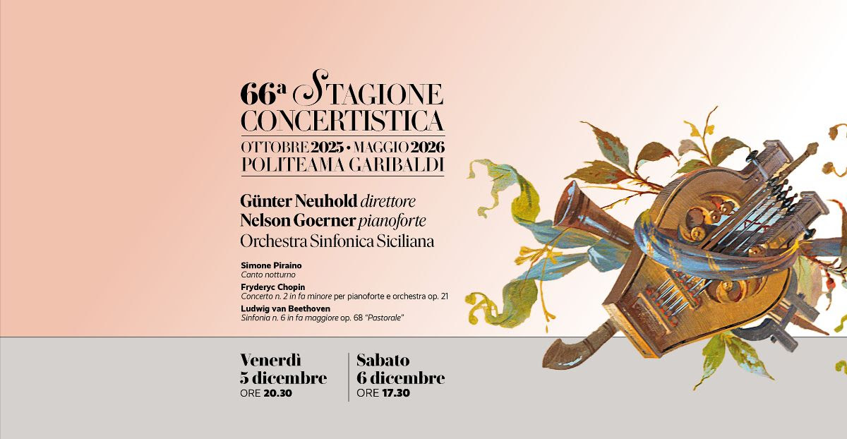 Il mese di dicembre della 66ª Stagione concertistica della Fondazione Orchestra Sinfonica Siciliana inizia al Politeama Garibaldi con il consueto doppio appuntamento settimanale venerdì 5 dicembre alle ore 20.30 e sabato 6 dicembre alle ore 17.30