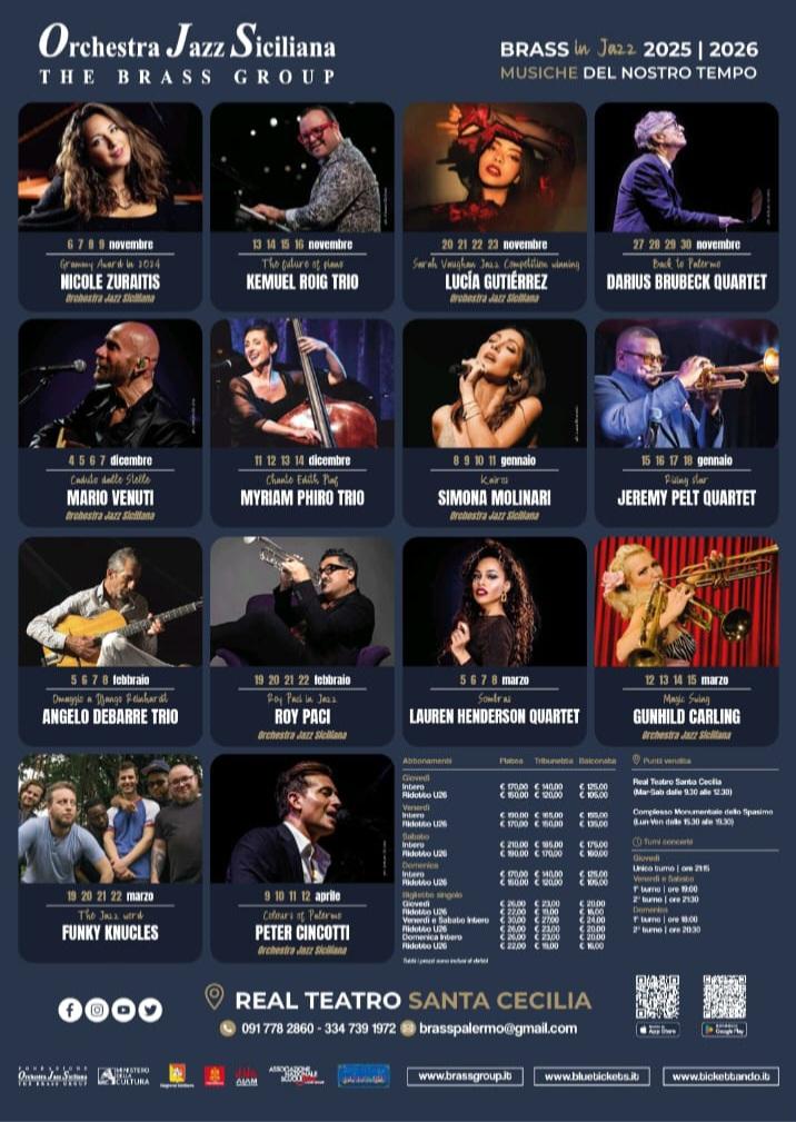 Il Blue Brass Jazz Club accende i riflettori su una nuova tappa della rassegna concertistica dedicata al grande jazz, ospitata negli spazi affascinanti del Ridotto dello Spasimo.