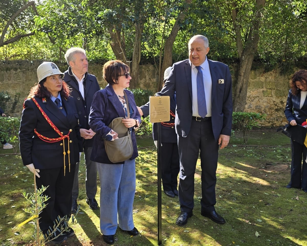 Una targa commemorativa e la piantumazione di un albero di ulivo nei giardini di Villa Niscemi