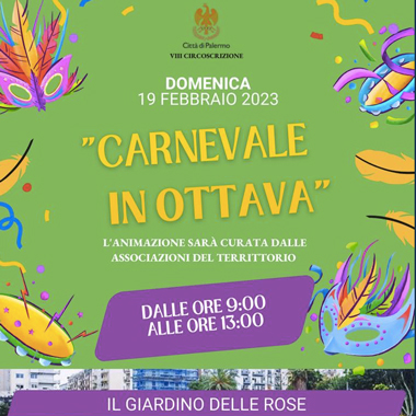 Domenica 19 febbraio 2022, dalle ore 10:00 alle ore 13:00, presso il roseto “Rosa Balistreri”, si terrà la prima edizione del “Carnevale in ottava” organizzato per i bimbi e le famiglie dell’ottava circoscrizione.</