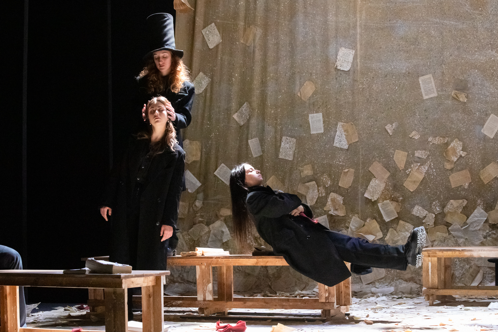 A tutto questo gli attori e le attrici della Scuola di recitazione del Teatro Biondo hanno dato voce, corpo e anima, mutando spesso natura. Angeli ed Esseri Umani insieme come i due lati della stessa figura, e spesso nel silenzio, “un silenzio non come lo intendiamo noi, ma come lo intende Dio”, per dirla con le parole di Rilke.