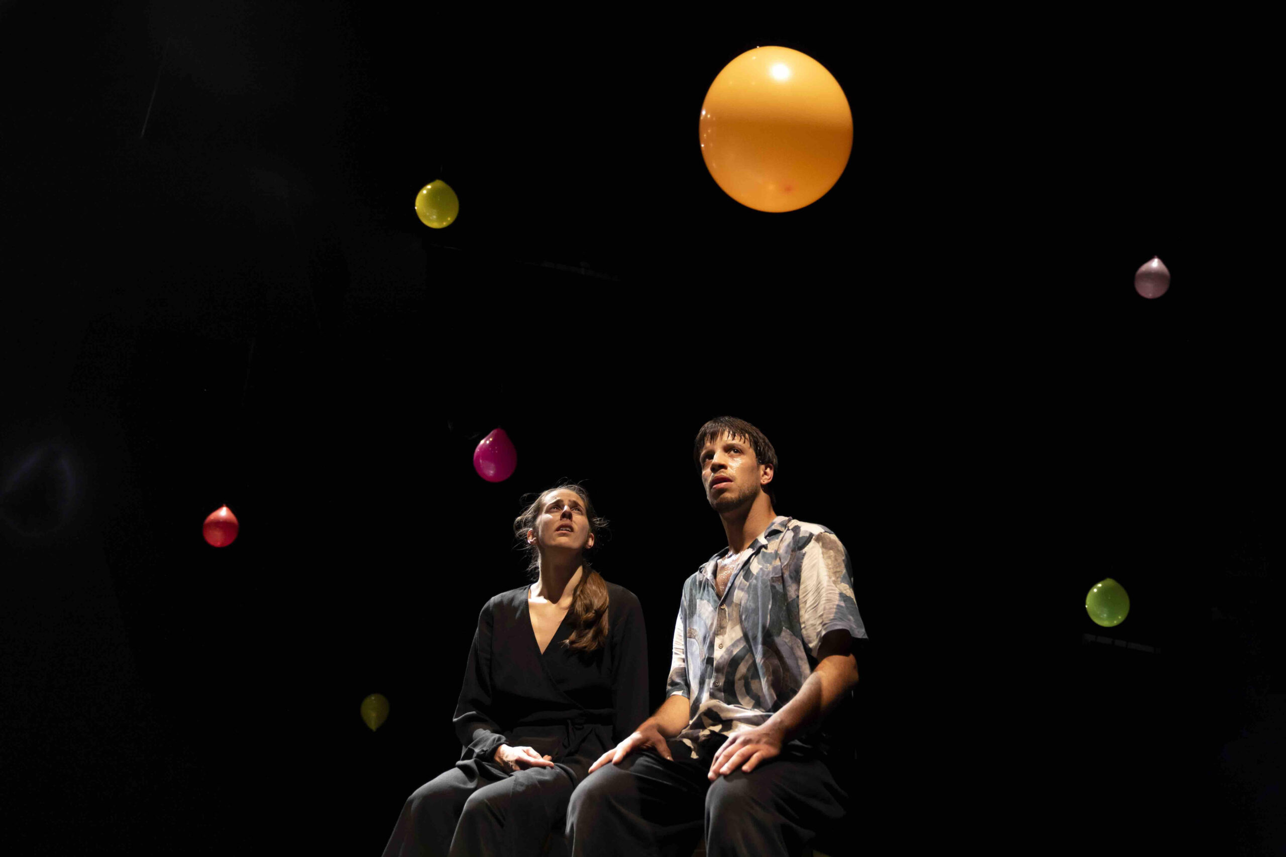 Il titolo "InFesta" si carica così di un duplice significato, diventando il filo conduttore di un racconto intimo che si rivela nei dettagli nascosti tra le pieghe del tempo. Il palcoscenico diventa un tempio sacro, un luogo dove l'urgenza personale si dissolve in una sinfonia di sentimenti condivisi. È in questo spazio casalingo che si attendono gli ospiti e si aspetta, ritualmente, di essere invasi. Elementi scenici saturi di simbolismo, come palloncini colorati, un tavolino e quattro sedie, fungono da linguaggio visivo di questa narrazione poetica, mentre testi e immagini amplificano l'eco dei ricordi, l'ancora per chi cerca un significato nell'elaborazione della separazione.